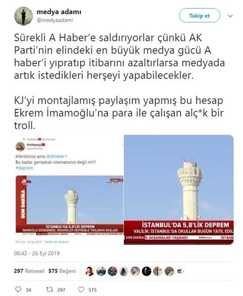 Sosyal medya trollerinden A Haber'e çirkin saldırı! Depremde bile boş durmadılar