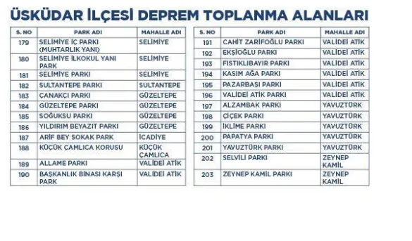 Toplanma alanı listesini de paylaşan Üsküdar Belediyesi, ilçede yaşayanların mahalle mahalle ulaşabileceği toplanma yerleri için internet adresi vermeyi de unutmadı.