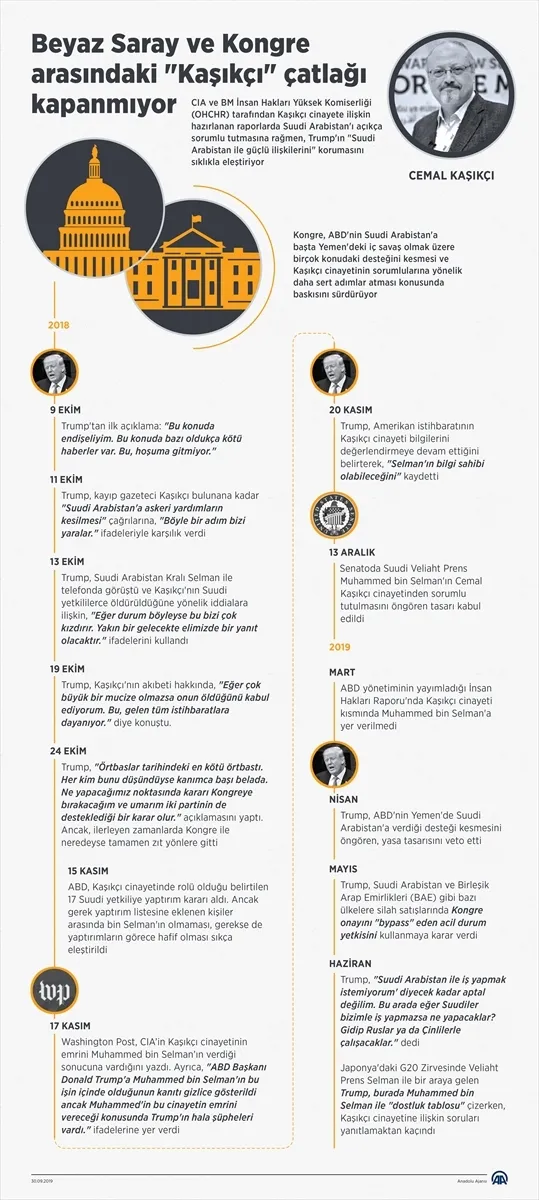 Yönetimim, ilk günden itibaren bu konuda tam şeffaflık politikasını benimsemiştir. Geride bıraktığımız bir yıllık dönemde istihbarat ve emniyet teşkilatlarımız ile diplomatlarımız ve savcılarımız, meselenin takipçisi olarak muhataplarıyla işbirliği yapmış; ulusal ve uluslararası kamuoyunu aydınlatmak için gereken adımları atmışlardır. Bu kapsamda Suudi Arabistan'ın yanı sıra Amerika Birleşik Devletleri, Rusya Federasyonu, Almanya, Fransa ve Birleşik Krallık'ın aralarında bulunduğu ülkelerle elimizdeki kanıtları paylaştık. İlaveten Birleşmiş Milletler Özel Raportörü Agnes Callamard'ın soruşturmasına katkıda bulunduk. Son olarak Kaşıkçı'nın katillerinin, suçun işlediği yer olan Türkiye'ye gönderilmesi için Suudi Arabistan nezdinde girişimlerde bulunduk.