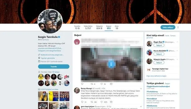 * Her fırsatta Müslümanlara saldıran ve sapık diyen CHP mv. Sezgin Tanrıkulu boş zamanlarında twettırda neler yapıyor, neler izleyip beğeniyor. Sezgin beyin twitterda son beğendiye şeye bakmanızı asla tavsiye etmem! Birazdan küçük yeğenim yapmış veya hesap hacklenmiş der :)
