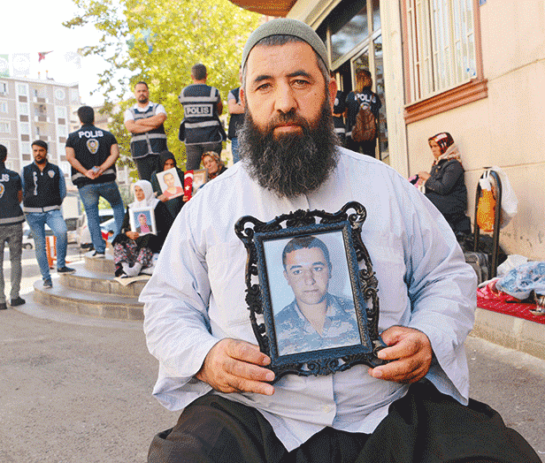 HDP'nin Diyarbakır İl Başkanlığı önündeki evlat nöbetinde 39 gün geride kaldı. Terör örgütü PKK tarafından kaçırıldığını belirttikleri çocuklarının bulunmasını isteyen 54 ailenin bekleyişi sürüyor. Vatani görevi için usta birliğine giderken, yol kesen PKK'lı teröristlerce kaçırılan yeğeni Emrah Avunan (24) için 13 Eylül'de oturma eylemine başlayan Bingöllü Muhittin Avunan, anne-babalar olarak 'Barış Pınarı Harekatı'nı desteklediklerini söyledi.