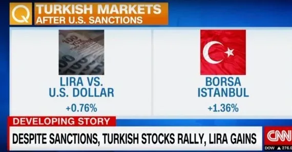 "ABD'nin daha önce uyguladığı yaptırım politikası bu sefer işe yaramıyor. Trump'ın sert açıklamalarına rağmen Türk lirası, dolar karşısında değer kazanıyor" çıkarımlarına yer verilen programda, Türk ekonomisinin bu defa hiçbir yaptırımdan olumsuz yönden etkilenmeyeceğinin de altı çizildi.