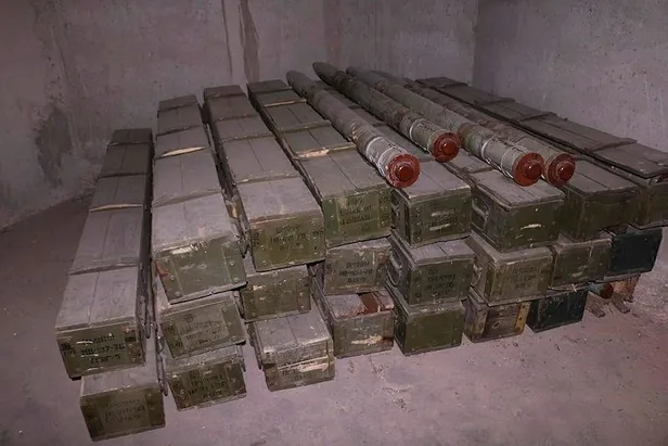 Depoda 100'den fazla uzun menzilli roket, antitank füzeleri, havan mermileri, Doçka mermileri, sandıklar içerisinde binlerce uçak savar mermisi ve 300 adet mayın tarama cihazı da ele geçirildi.