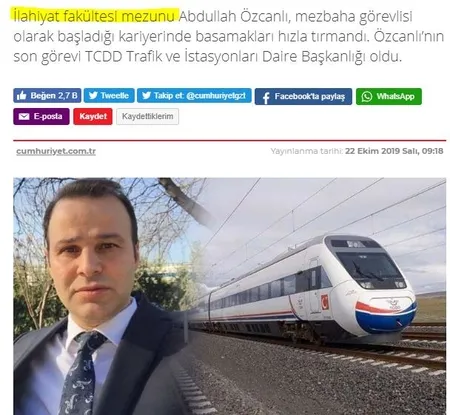 Cumhuriyet Gazetesi ve Sözcü Gazetesi TCDD Trafik ve İstasyonları Daire Başkanlığına atanan Abdullah Özcanlı'nın 22 yıllık raylı sistem ve ulaşım tecrübesi hiçe sayarak algı operasyonuna başladı. İki gazetede yayınlanan haberlerin detaylarında Abdullah Özcanlı'nın ilahiyat mezunu olduğuna vurgu yapması ise dikkatlerden kaçmadı.