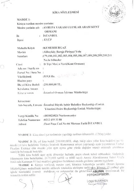 Kadir Topbaş'ın İstanbul Büyükşehir Belediye Başkanı olduğu dönemde Orman Genel Müdürlüğü'yle sözleşme yapılmış. Orman vasfında olan alan İstanbul Büyükşehir Belediyesi tarafından tahsisi yapıldıktan sonra kent ormanı niteliğine kavuşturuldu ve halka açıldı. Kiralama süresinin 10 yıl olduğu ve 3 Temmuz 2022 tarihinde sözleşmenin bittiği bildirildi.