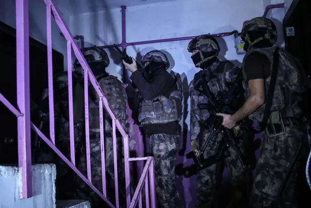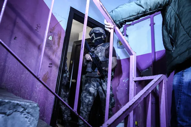 Operasyona özel harekat polisi ile polis helikopteri de eşlik etti. Özel harekat polisleri koçbaşı kapıları kırarak adreslere girdi.