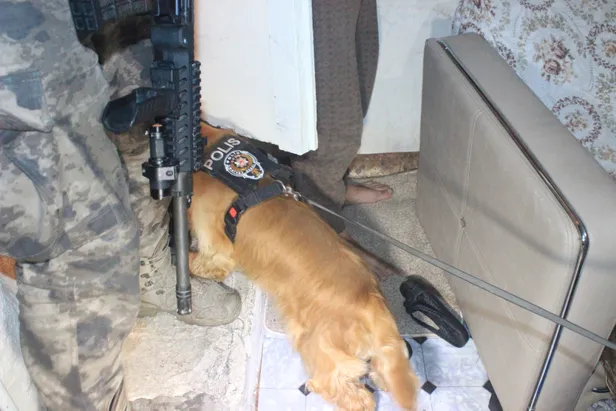 Operasyon yapılan Sarıgöl Mahallesi Postane Arkası ve Sakarya Sokak'ta iki gecekonduydu. baskınlara özel harekat polisinin yanı sıra narkotik köpeği Alex de eşlik etti.