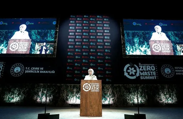 Haliç Kongre Merkezi'nde 2. Uluslararası Sıfır Atık Zirvesi düzenlendi. Zirveye, Cumhurbaşkanı Recep Tayip Erdoğan'ın eşi Emine Erdoğan, Çevre ve Şehircilik Bakanı Murat Kurum ve Birleşmiş Milletler İklim Değişikliği Çerçeve Sözleşmesi İcra Direktörü Yardımcısı Mr. Ovaıs Sarmad katıldı.