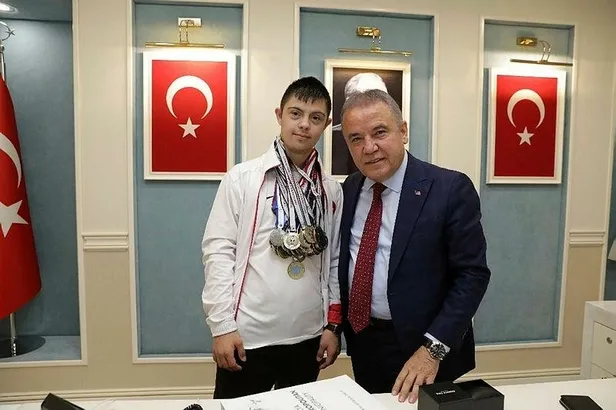 Antalya'da down sendromlu yüzücü Alperen (18), 26'sı Türkiye şampiyonluğu olmak üzere 43 madalya kazandı. Dünyada göğsümüzü kabarttı.