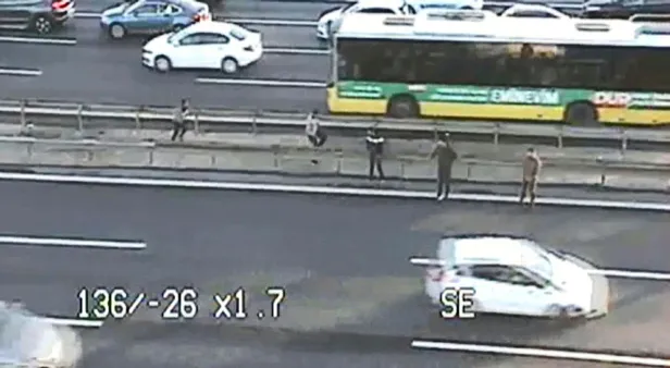 Öte yandan şüphelilerin hırsızlık anları ile TEM Otoyolu'nda otomobillerini durdurarak, peşlerindeki polisten yaya olarak kaçmaları kameralara yansıdı. Görüntülerde otomobillerini emniyet şeridine park eden şüpheliler, bariyerlerden atlayarak, yolun karşısına geçiyor. Şüpheliler ağaçlık alanda koşarak, uzaklaşıyor.