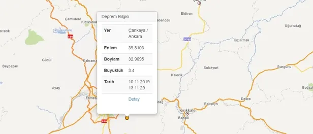 Son dakika haberine göre Ankara'da saat 13.11 sıralarında merkez üssü Çankaya olan 3.4 büyüklüğünde deprem meydana geldi. Deprem sonrası büyük panik yaşandı.