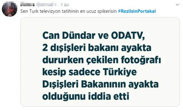 Portakal ayrıca YPG destekçisi Lindsay Graham'in bacak üstüne bacak atmasını, "Erdoğan'ın karşısında dikkat çeken oturuş" başlığıyla haber yapan muhalif Oda TV sitesinin linkini paylaştı.