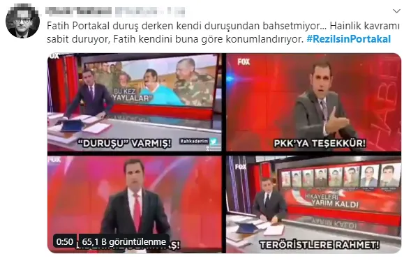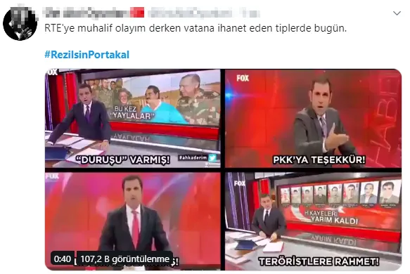 FOX TV Anahaber Sunucusu Fatih Portakal'ın Başkan Erdoğan'ın ABD ziyareti hakkındaki paylaşımları sosyal medyada büyük tepki topladı. Kısa sürede binlerce tepki mesajı atan sosyal medya kullanıcıları nedeniyle Twitter'da 'Rezilsin Portakal' TT'si oluşturdu.