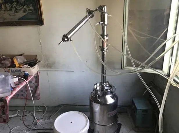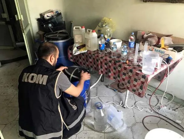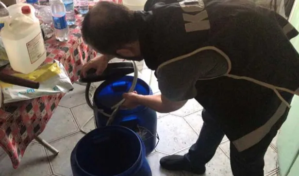Adrese baskın düzenleyen polis, piyasaya sürülmek üzere olan 418 litre sahte rakı, 1 elektronik dengeleyici amper cihazı, anason damıtma makinesi, 22 kilo anason tohumu, 25 boş rakı şişesi, 25 litre etil alkol ele geçirildi.