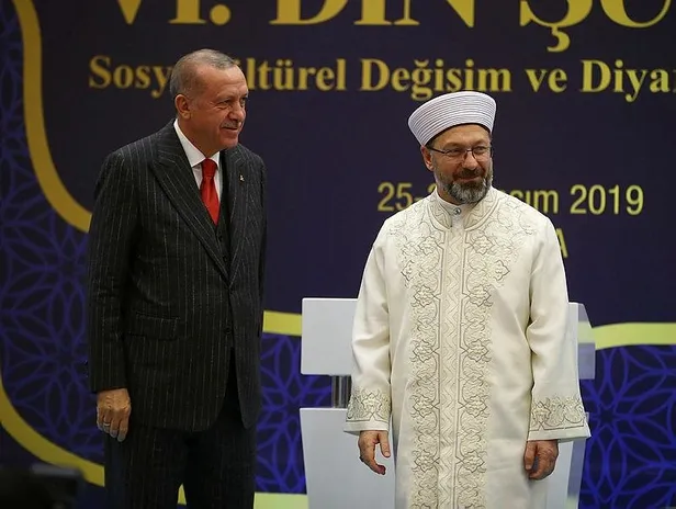 Cumhurbaşkanı Recep Tayyip Erdoğan'ın katılımıyla bir otelde düzenlenen "6. Din Şurası Kapanış Programı"nda konuşan Erbaş, bütün dünyada olduğu gibi Türkiye'de de sosyoekonomik ve kültürel değişimin, dini inanç, ahlaki değerler ve milli kültürü tehdit eder hale geldiğine dikkati çekti.