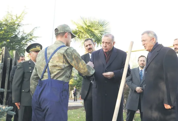 Erdoğan, İstanbul İkmal Maliye Okulu ve Eğitim Merkezi Komutanlığı'nı ziyaret ederek fidan dikimi gerçekleştirdi. Başkan, tezkeresine 10 gün kalan askere kalemini hediye etti.