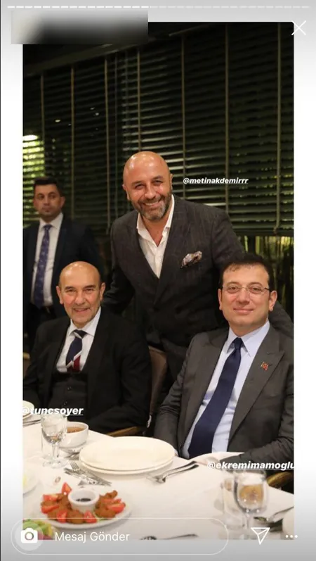 Ekrem İmamoğlu, Tunç Soyer ve Canan Kaftancıoğlu'nun katıldığı yemeğe FOX TV Genel Yayın Yönetmeni Doğan Şentürk, Sözcü Gazetesi yazarları Özlem Gürses ve Deniz Zeyrek'in katıldığı öğrenildi.