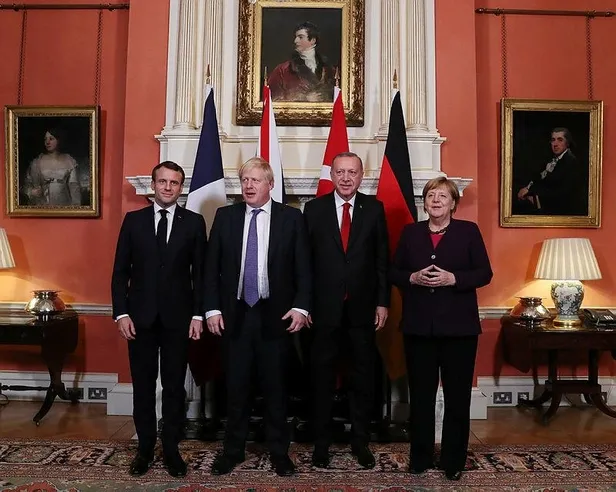 Başkan Recep Tayyip Erdoğan, NATO Zirvesi'ne katılmak için geldiği Londra'da devlet liderleriyle önemli temasları başladı. Erdoğan, Londra'daki temasları kapsamında, "NATO'nun beyin ölümü" geriliminin ardından Fransa Cumhurbaşkanı Emmanuel Macron, Almanya Başbakanı Angela Merkel ve İngiltere Başbakanı Boris Johnson'la "Suriye" konulu dörtlü zirvede bir araya geldi. Zirve yaklaşık 1 saat sürdü.