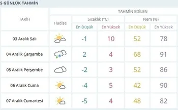 Çok bulutlu, karla karışık yağmur ve kar yağışlı geçeceği tahmin ediliyor. Yağışların; güneybatı ilçelerinde yer yer yoğun kar şeklinde olması bekleniyor.
