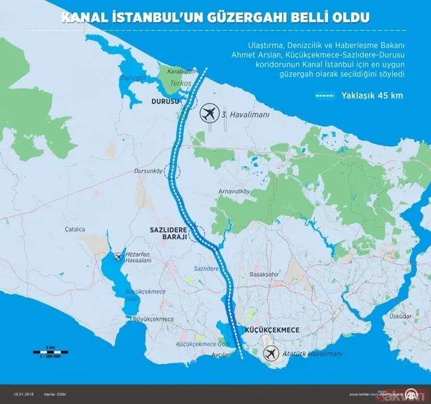 Cumhurbaşkanı Erdoğan'ın çılgın proje olarak duyurduğu Kanal İstanbul Kanal Küçükçekmece-Sazlıdere-Durusu koridorunda 45 kilometrelik bir hat boyunca inşa edilecek ve tam kapasite kullanılması halinde yıllık 8 milyar dolar gibi bir rakamı ekonomiye kazandırabilecek.