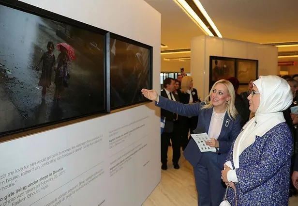 Başkan Recep Tayyip Erdoğan'ın eşi Emine Erdoğan, Cenevre'de BM Milletler Sarayında Cumhurbaşkanlığı, AFAD, Kızılay stand ve sergilerini gezdi.