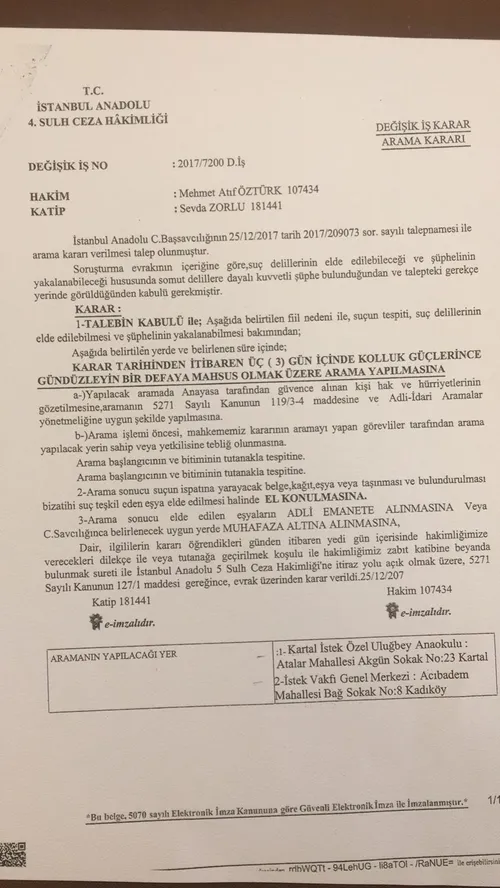 Vakıf duyuruda 12 Aralık'ta görüntüleri yetkili makamlara teslim ettiğini belirtmiş. Bunun belgesi nerede? Davadaki görüntüler 27 Aralık'ta polis tarafından EL KONULARAK, yani zorla alınmış. Belgesi burada:
