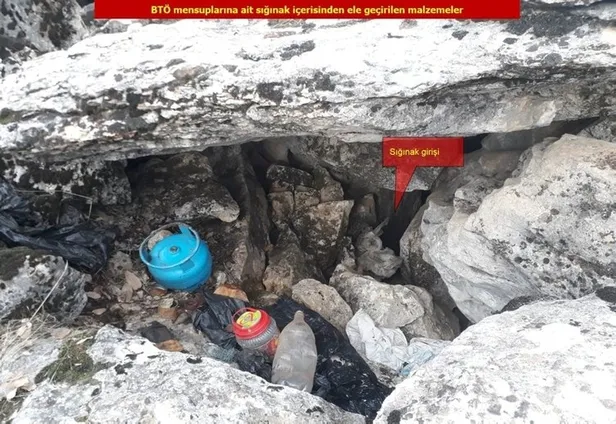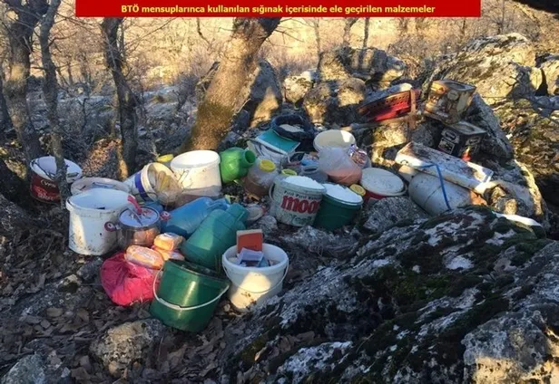 Söz konusu sığınak ve doğal mağaralarda 2 el bombası, 7,62 milimetre çapında 59 AK-47 Kalaşnikof piyade tüfeği fişeği, 2 şarjör, 3 el telsizi, el yapımı patlayıcı düzeneğinde kullanılan telsize bağlı el yapımı 3 elektronik devre, ateşleme düzeneği, 5 elektrikli fünye, 35 metre elektrik kablosu,10 metre bakır tel, 8'li pil bloğu, 732 pil, lehim teli, 18 büyük tüp, 7 küçük tüp, 1 ton gıda malzemesi, çok sayıda giyim malzemesi, tıbbi malzeme ve örgütsel doküman ele geçirildi.