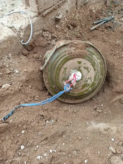 "Barış Pınarı bölgesinde eli kanlı PKK/YPG'li teröristlerce, masum sivilleri hedef alarak, bir evin girişine uzaktan kumandalı şekilde tuzaklanmış anti tank mayınından oluşan EYP, EOD Timlerimiz tarafından etkisiz hale getirildi."