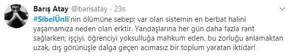 Eski HDP'li vekil ve şimdilerde TKP'de siyaset yapan, geçtiğimiz günlerde Meclis'te halkı sokağa çıkmaya çağıran Barış Atay, Sibel Ünli'nin intiharını kirli amaçlarına alet etti.