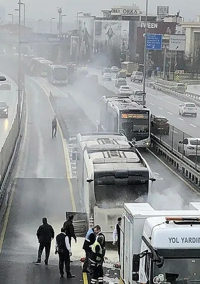 Metrobüs seferleri, hasar gören metrobüsün taralı alana çekilmesinin ardından normale döndü. Havadan çekilen görüntülerde metrobüsün motor kısmının yandığı ve trafiğin normal seyrine döndüğü görüldü.