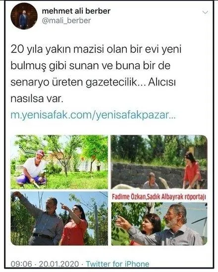 Haberde bahsi geçen arsanın Bakan Albayrak'ın babası Sadık Albayrak'a ait olduğunu belirten Özel, "Bakan Albayrak'ın babası Sadık Albayrak tarafından 2003 yılında alınan köy tapulu arsada bir adet prefabrik ev yer almaktadır. Söz konusu arsanın bitişiğindeki bir diğer arsa da 2012 yılında sahibi tarafından satışa çıkartıldığında, yabancı almasın düşüncesi ile imkanı olan her vatandaşın yapabileceği sıradan bir satın almayla Berat Albayrak tarafından satın alınmıştır. Bu arsa üzerinde hiçbir inşaat olmadığı gibi arsanın niteliğini değiştirecek hiçbir girişimde de bulunulmamıştır. Bitişik arsa Bakanın babasının olduğu için arsa ilen tevhid ile 2003 yılında alınan ve ranta dönük hiçbir hesap olmadan kullanılan arsa ile birleşmiş, arazi üzerindeki prefabrik yapı ve köy evi muhafaza edilmiştir" açıklamasında bulundu.