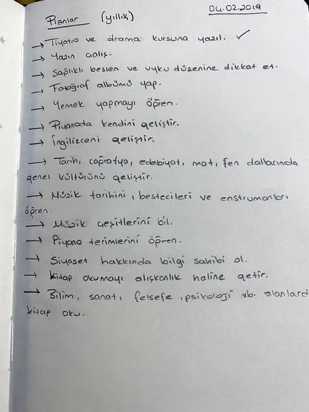 HAYALLERİNİ VE PLANLARINI NOT ALMIŞ