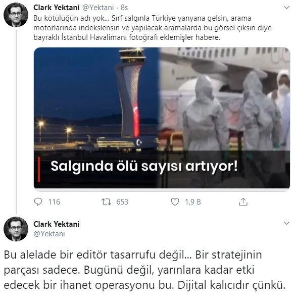 Bu olay üzerine Twitter hesaplarından binlerce mesaj atan vatandaşlar, ''Türkiye'nin adı salgınla özdeşleşsin diye bu görseli dijital hafızaya atıyorlar'' yorumlarında bulundular.