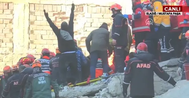 10:50 Elazığ'ın Mustafa Paşa Mahallesi'nde enkaz altından 14 saat sonra bir kişi sağ çıkarıldı.