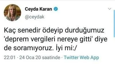 MHP'den ihraç edilen eski milletvekili Sinan Oğan ve gazeteci Ceyda Karan deprem vergilerini gündeme getirdi. Gelecek Partisi Genel Başkan Yardımcısı Selçuk Özdağ, deprem sonrası "Gölcük depreminden bugüne 21 yıl geçti, o günden bugüne Devleti yönetenler ellerini vicdanlarına koysunlar ve sorsunlar: "Kentsel dönüşümle ilgili yaptıklarımız yeterli mi? Ülkemizi ahlaki olarak yönettik mi? Depreme karşı insanımızı ve binalarımızı hazırladık mı? El cevap maalesef!!!" diye yazdı. Daha deprem yeni olmuş ve enkaz altında kalanlar varken siyaset yapılmasına ve bundan nemalanmaya çalışılmasına vatandaşlar tepki gösterdi.