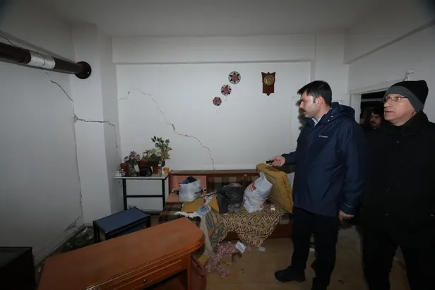 Abdullah Paşa Mahallesine giden Bakan Kurum, hasar gören binaların içine girip inceleme yaptı.