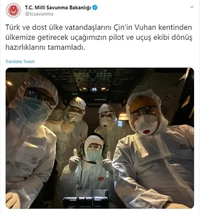 MSB: Türk ve dost ülke vatandaşlarını Çin'in Vuhan kentinden ülkemize getirecek uçağımızın pilot ve uçuş ekibi dönüş hazırlıklarını tamamladı.