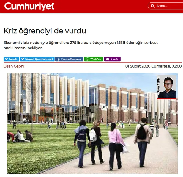 Yalan haberlerin adresi Cumhuriyet'in bir haberi daha elinde patladı. Bugün "Kriz öğrenciyi de vurdu" başlıklı bir haber yayınlayan Cumhuriyet'in mumu yatsıya kadar bile yanmadı.