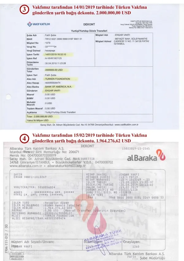 Ensar Vakfı'ndan "şartlı bağışın TURKEN Vakfı'na iletilmediği" iddialarına belgeli yanıt