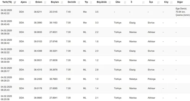 Son dakika haberi... AFAD tarafından yapılan açıklamaya göre, merkez üssü Ege Denizi İzmir Çeşme açıklarıda 3.5 büyüklüğünde bir deprem meydana geldi. Saat 06.42'de gerçekleşen deprem çevre ilçelerde de hissedildi. Kısa süreli paniğe neden olan depremde can ya da mal kaybı yaşanmadığı öğrenildi. İşte 4 Şubat AFAD son depremler listesi...