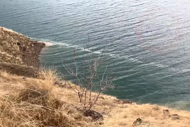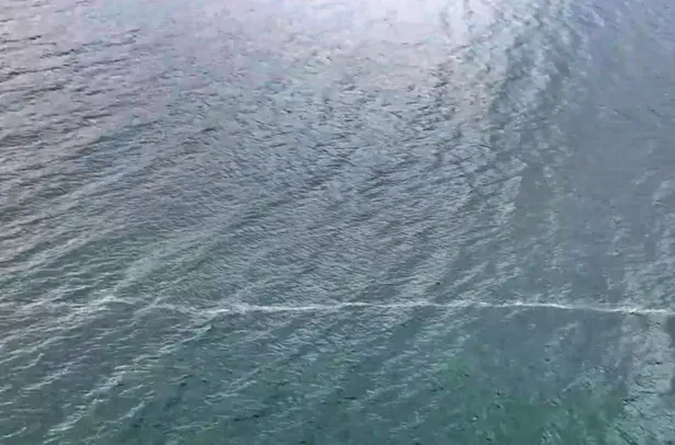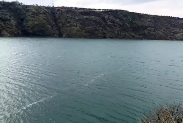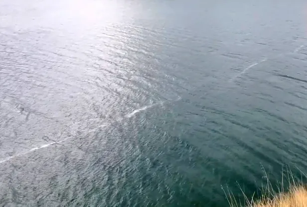 Kırığın göl tabanındaki uzantısını inceledikleri sırada bir anda su yüzeyinde, karşı kıyıya kadar uzanan beyaz bir çizgi oluştuğunu belirten Kürçer, kameraya kaydettiği o anlarda şunları dile getiriyor: