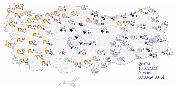 Son dakika... Meteoroloji Genel Müdürlüğü tarafından yapılan son dakika açıklamasına göre; Yurdun kuzey ve doğu kesimlerinin parçalı ve çok bulutlu, Batı ve Orta Karadeniz, Doğu Karadeniz kıyıları, İç Anadolu'nun doğusu, Doğu Anadolu'nun güneydoğusu ile Siirt, Artvin, Ankara ve Çankırı çevrelerinin kar yağışlı, diğer yerlerin parçalı ve az bulutlu geçeceği tahmin ediliyor. Peki, bugün yurt genelinde hava durumu nasıl olacak? İşte 10 Ocak hava durumu raporu...