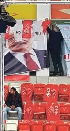 Saat 10.00'a kadar salonda sadece Deniz Yücel'in afişleri yer aldı. Kongrede aday olacağını duyuran Ezgi Deniz Urunga'nın afişi salona asılırken küçük çaplı bir kriz yaşandı. Urunga'nın ve Kılıçdaroğlu'nun yer aldığı afiş Yücel'in afişinin üzerine asıldı. Urunga'nın afişi asma konusu krize neden oldu, itişmeye varan kavga çıktı. İki partili birbirini itti.