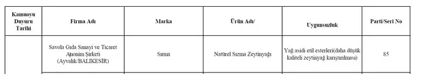 Halkın sağlığını düşünmeden tehdit eden firmalar arasında ünlü yağ markası olan Sırma'da yer aldı. Ünlü firmanın 'Natürel sızma zeytinyağı' ürününe daha düşük kalitede zeytinyağı karıştırdığı belirlendi.