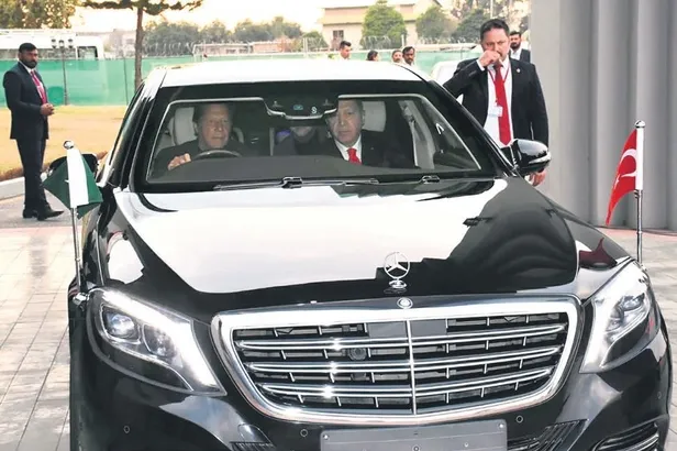 Erdoğan, Pakistan Başbakanı İmran Han'ın kullandığı araçla Başbakanlık'a gitti.