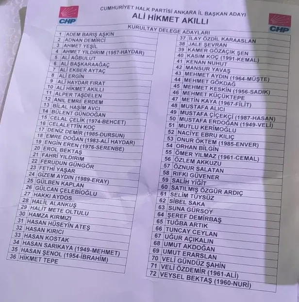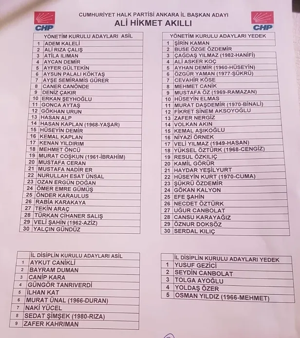 CHP Ankara İl Başkanı seçilen Ali Hikmet Akıllı'nın listesinde dikkat çeken isimler de yer aldı.
