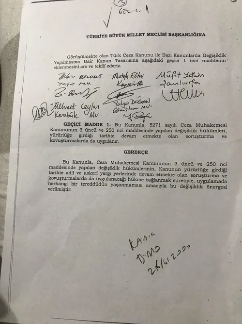 "Görüşülmekte olan Türk Ceza Kanunu ile Bazı Kanunlarda Değişiklik Yapılmasına Dair Kanun Tasarısı'na aşağıdaki geçici 1. maddenin eklenmesi arz ve teklif ederiz: