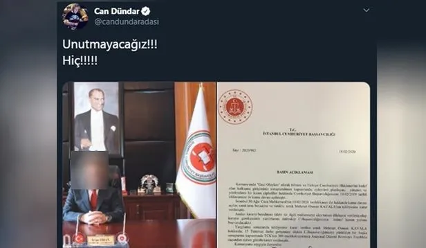 Gezi Parkı odaklı olaylara ilişkin davada beraatine ve tahliyesine karar verilen Anadolu Kültür AŞ Yönetim Kurulu Başkanı Osman Kavala, 15 Temmuz darbe girişimi soruşturması kapsamında gözaltına alındı. Gözaltı kararının ardından devreye giren firari hain Can Dündar, sosyal medya üzerinden savcıyı hedef gösterdi. Dündar'ın skandal paylaşımına tepkiler çığ gibi yükseldi.