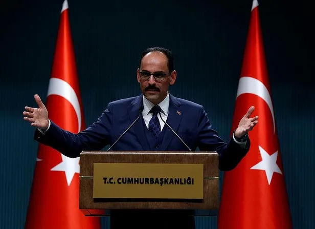 Kalın, Türkiye Cumhurbaşkanı Recep Tayyip Erdoğan başkanlığında Cumhurbaşkanlığı Külliyesi'nde yapılan kabine toplantısı devam ederken açıklamalarda bulundu, soruları yanıtladı.