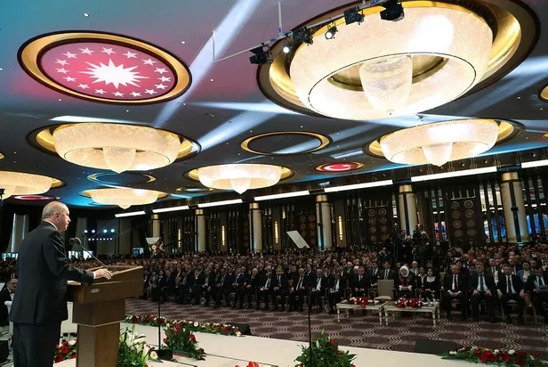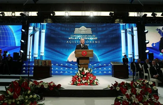 Son dakika haberi... Başkan Recep Tayyip Erdoğan, Cumhurbaşkanlığı Külliyesi'nde Millet Kütüphanesi Açılış Töreni'nde önemli açıklamalarda bulundu. Erdoğan, "Bugün ülkemiz ve Ankara'mız için gerçekten tarihi bir ana şahitlik ediyoruz. Cumhurbaşkanlığı Millet Kütüphanemizin açılışı vesilesiyle sizlerle beraber olmaktan büyük bir memnuniyet duyuyorum." dedi. Başkan Erdoğan, "Her kitap bir âlimdir. Eğer yüzlerce kitabınız varsa, yüzlerce âlimin dostusunuz ve onların ilminden faydalanıyorsunuz demektir. Bu da bir nevi dünyada cennet hayatı yaşamak, cennet meyvelerinden tatmaktır." ifadelerini kullandı.